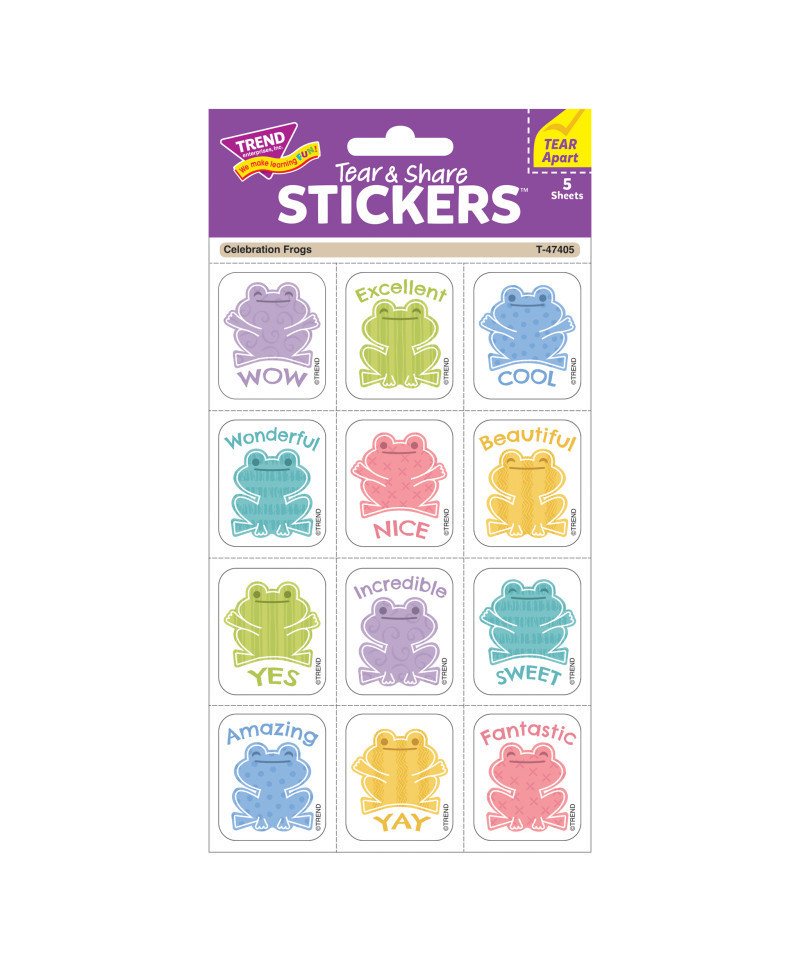 TREND Celebration Frogs Tear & Share Stickers®, 60 Count