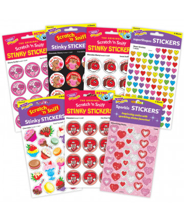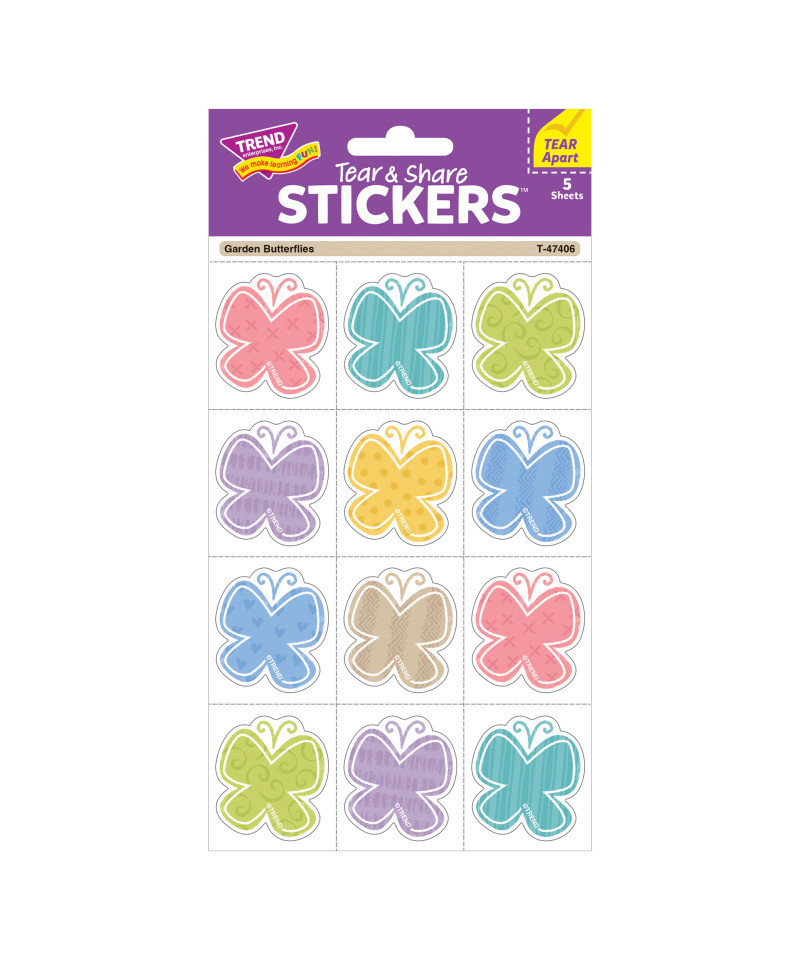 Sharing your love of stickers is now simpler and more fun with TREND Tear & Share Stickers. Just tear apart at the perforated line to separate a sticker from the rest of the sheet - no scissors needed, and the recipient can place their sticker wherever they like! Perfect for motivation, party favors, rewards, collecting, and more. Stickers measure 1-1/4" x 1-7/16". Nontoxic, acid-free, and photo safe. 5 sheets; 60 stickers per pack.