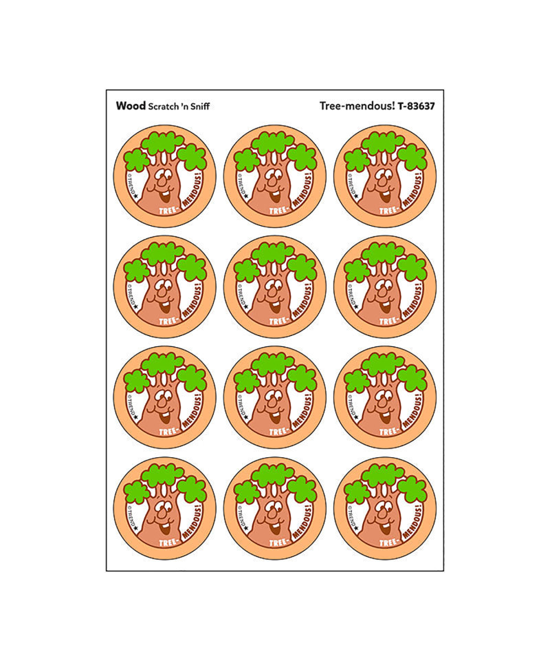 Get a whiff of this Tree-mendous!, wood-scented sticker! TREND Scratch 'n Sniff Stinky Stickers® from the '80s are BACK! Fun to collect, trade, and celebrate accomplishments and special occasions. Collectors will be happy to spot the ˜… to distinguish TREND Retro Stinky Stickers® from those printed in the 1980s. Each sticker 1.25" diameter. Each pack includes 24 stickers on 2 sheets in 1 design.