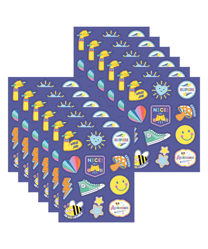 Reward your students for a job well done with Carson Dellosa's We Stick Together Motivational Stickers! Each sticker features a retro design or positive sayings like "Great job!" and "Groovy!" to commend students on their achievements and good behavior. Each pack includes 72 reward stickers on 6 sheets. Sold as 12 packs for a total of 864 stickers.