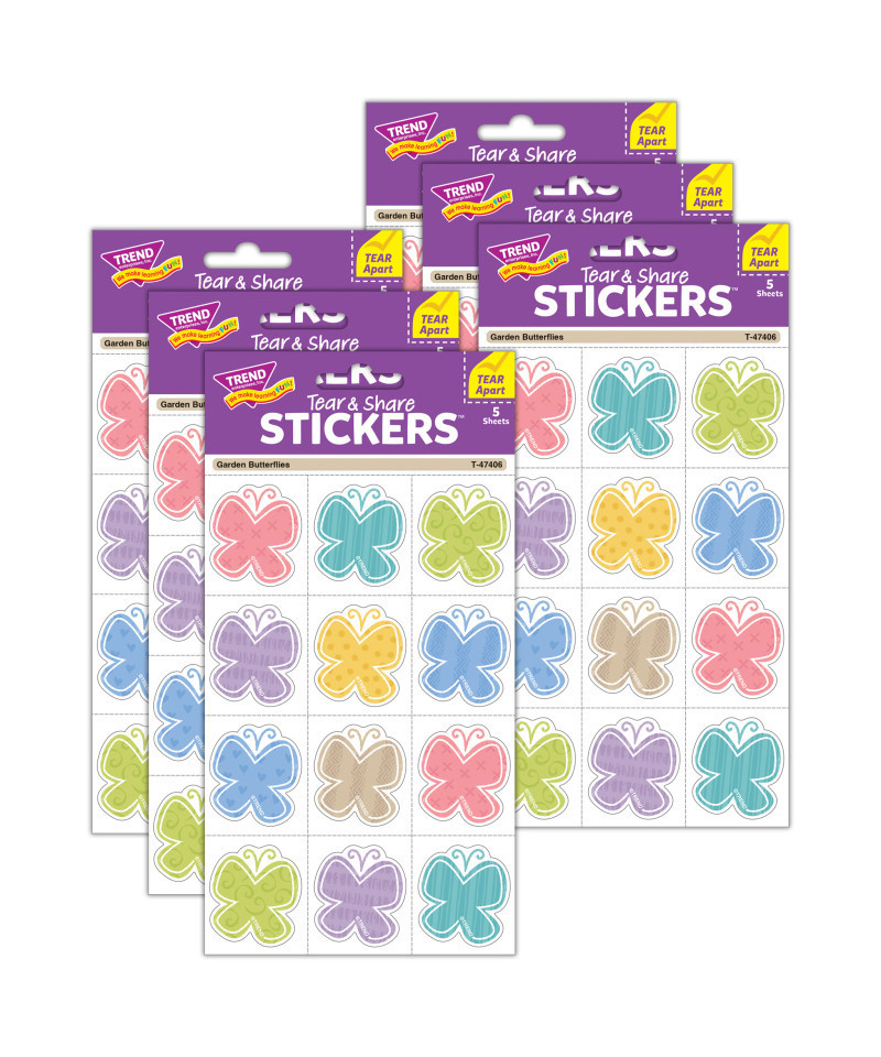 TREND Garden Butterflies Tear & Share Stickers®, 60 Per Pack, 6 Packs