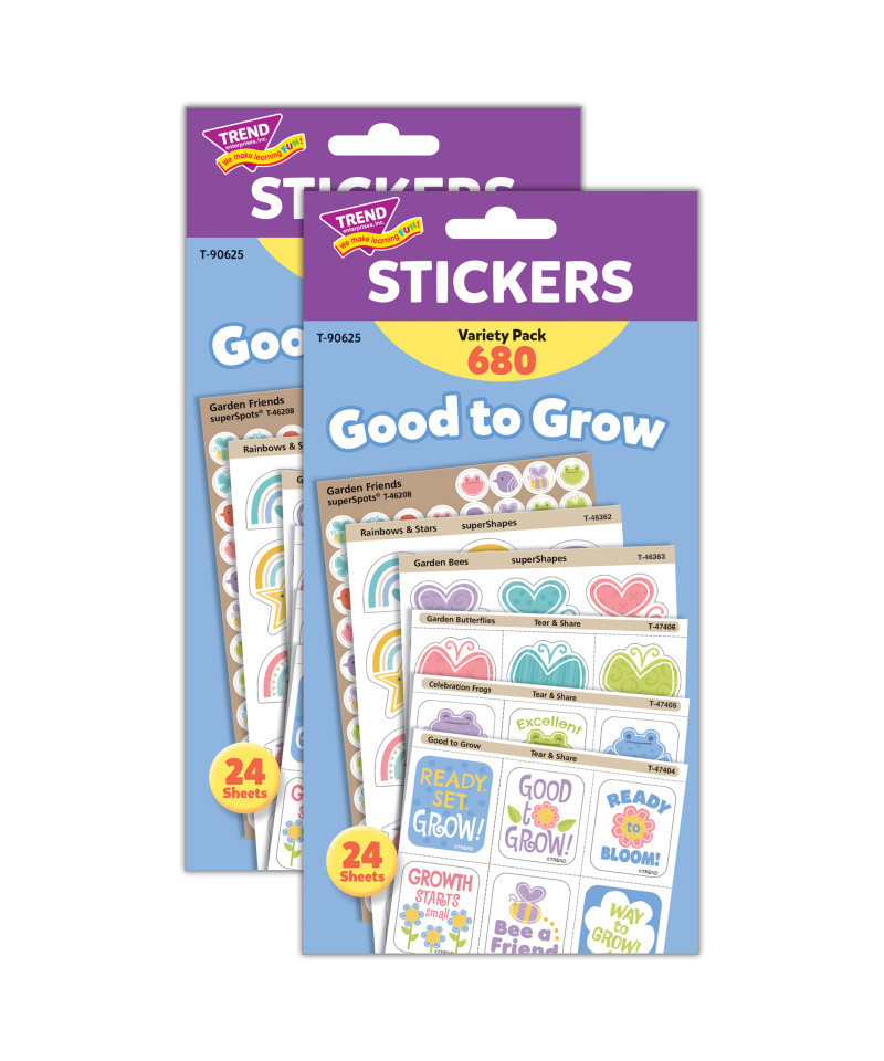 Handy pack of Good to Grow themed stickers provides variety for motivation and rewards.