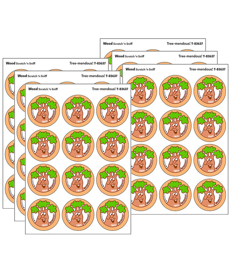 Get a whiff of this Tree-mendous!, wood-scented sticker! TREND Scratch 'n Sniff Stinky Stickers® from the '80s are BACK! Fun to collect, trade, and celebrate accomplishments and special occasions. Collectors will be happy to spot the ˜… to distinguish TREND Retro Stinky Stickers® from those printed in the 1980s. Each sticker 1.25" diameter. Each pack includes 24 stickers on 2 sheets in 1 design. Sold as 6 packs for a total of 144 stickers.