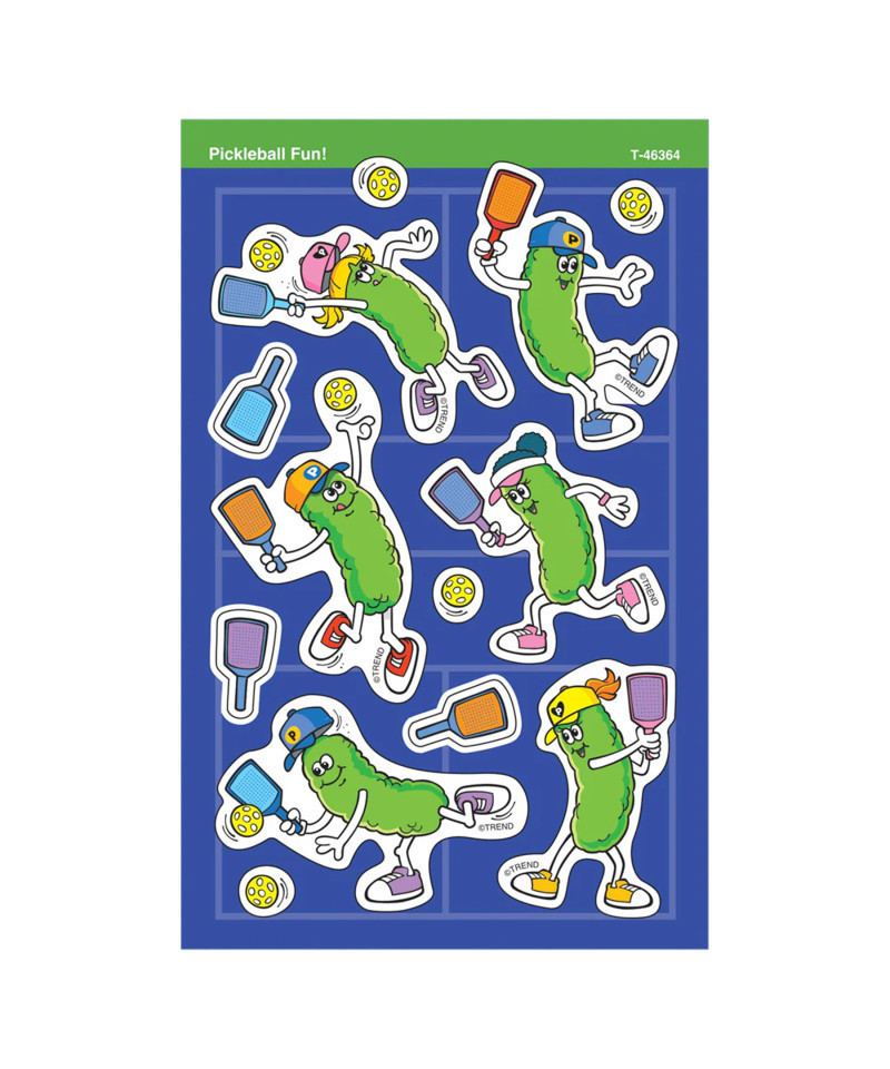 Get in the swing of it with these fun pickleball-themed stickers! Great as rewards, on invitations and notes - and fun to collect and trade. 8 sheets per pack, 104 stickers in all. Stickers are of various sizes. Acid-free, nontoxic, and great for use in scrapbooks and journals. Made in USA.