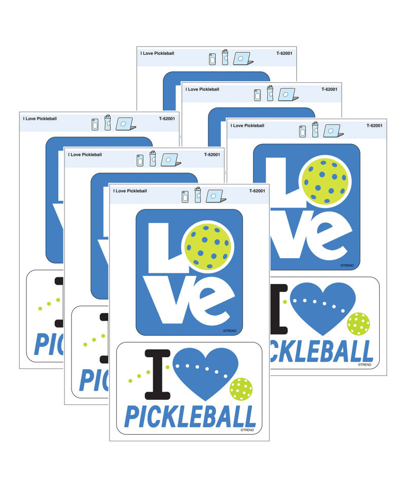 Show off your passion for pickleball on water bottles, phones, laptops, tablets, and more. Great for most non-porous surfaces. One sheet per pack, 2 designs per title. Sticker sizes vary from 2-3/8" diameter to 3-7/8". Made in USA. Sold as 6 packs for a total of 12 stickers.