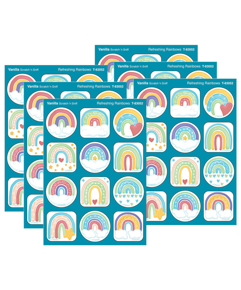 Encouraging, engaging, irresistibly collectible designs are e-SCENT-ial motivators and rewards. Scratch 'n sniff aroma plus fresh, friendly artwork appeal to kids and the kid in all of us. Four sheets per package, 48 stickers per pack. Each sticker 1.25" diameter. Photo safe, acid free for journaling, allergen free, and made in the USA. Sold as 6 packs for a total of 288 stickers.