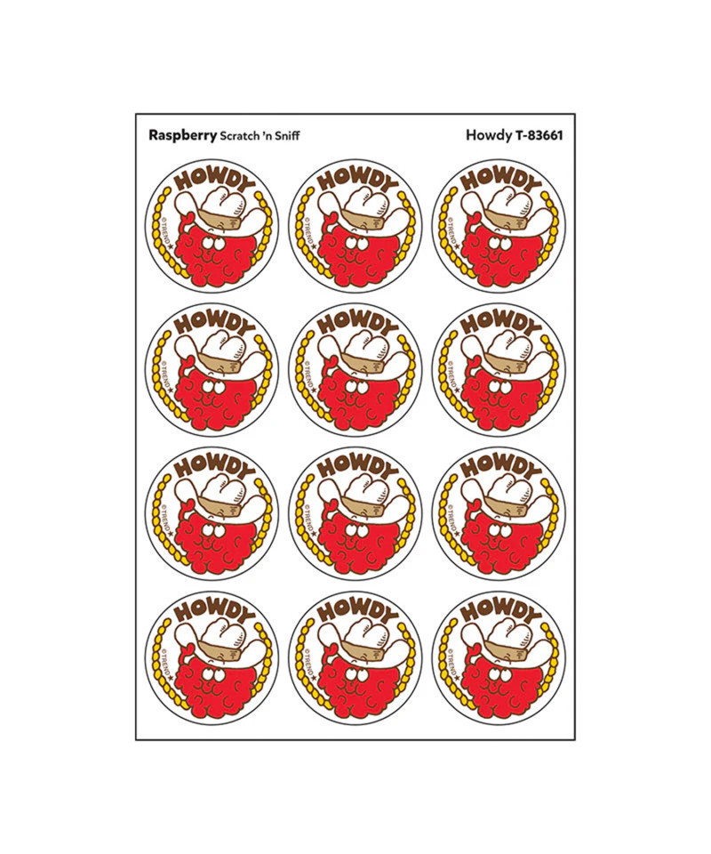 Get a whiff of this Howdy, raspberry-scented sticker! TREND Scratch 'n Sniff Stinky Stickers from the '80s are BACK! Fun to collect, trade, and celebrate accomplishments and special occasions. Collectors will be happy to spot the star symbol to distinguish TREND Retro Stinky Stickers from those printed in the 1980s.
