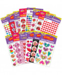 Hey, Valentine! Get ready for crafting and card-sending with this set full of Valentine-themed stickers! Fun for Valentine's Day exchanges, party favors, and seasonal rewards. Set includes one pack each of fourteen stickers: Llama Llove and Shimmering Hearts Sparkle Stickers; Hot Shot/Cinnamon scent, Sweet Stuff/Chocolate Cherry scent, and You're Great/Cherry Candy scent RETRO Scratch 'n Sniff Stinky Stickers; Artsy Heartsy/Cherry scent, Friendship Bears/Chocolate Cherry scent, Hearty Fun/Cinnamon scent, Sweet Hearts/Cherry scent, Treat Yourself/Chocolate scent, and Valentine's Day/Cherry scent Scratch 'n Sniff Stinky Stickers; and Colorful Sparkle Hearts, Heart Smiles, and Red Hearts superShapes Stickers. BONUS: This set also includes a printout of four Valentine Friends cards to share.