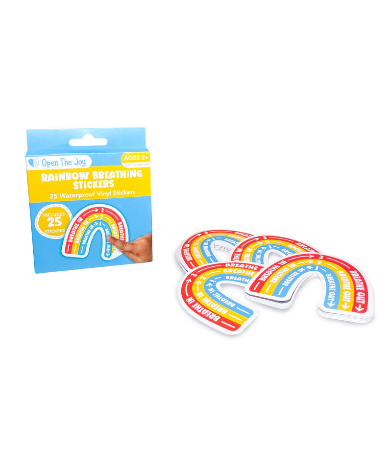 Promote mindfulness, calm, and emotional regulation in children with the Open the Joy Rainbow Breathing Sticker Class Pack. This set includes 25 vibrant 3.5-inch vinyl stickers, each guiding students through a simple rainbow breathing exercise. Perfect for classrooms, counseling sessions, camps, or calming corners, these stickers make learning stress-relief techniques fun and engaging. Durable and waterproof, they can be applied to notebooks, water bottles, or any personal item, encouraging kids to practice breathing exercises anytime, anywhere. The colorful rainbow design adds a playful touch while supporting focus, relaxation, and social-emotional development.