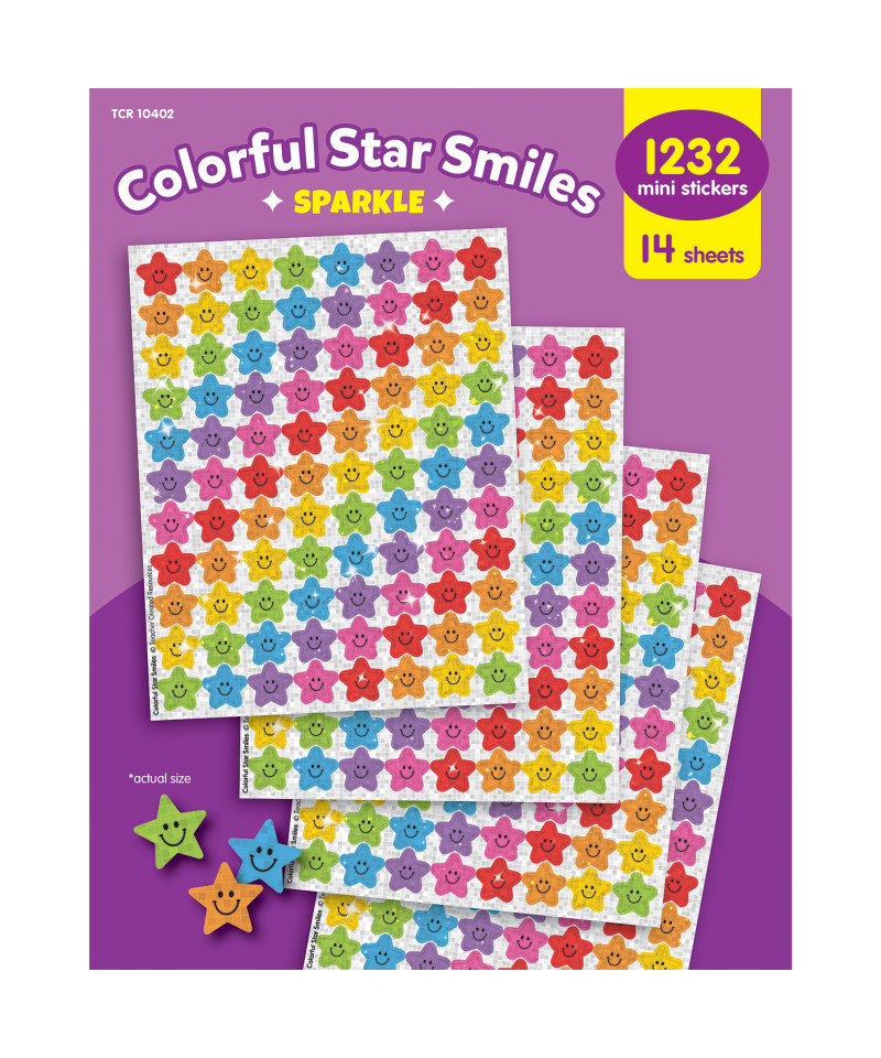 - IDEAL FOR CLASSROOMS & LEARNING SPACES: Show every student how much they shine with these sparkle stickers. Featuring smiling stars in a rainbow of glittery colors, these stickers are perfect for tracking progress on classwork, homework assignments, and behavioral goals. Pair with reward trackers and incentive charts for a visual way for students to see how they work toward any classroom goal, or stick on folders, notebooks, and take-home papers.