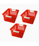 Romanoff Book Basket with carry handles is great for classroom and library storage needs. Includes a label holder built into one handle. Measures 12.25"L x 9.75"W x 6"H. Sold as a pack of 3 baskets.