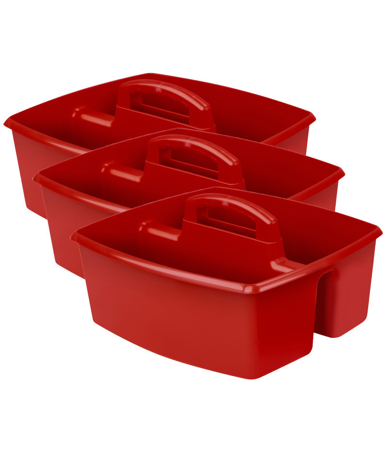 This large caddy has two large compartment to store art supplies, washing accessories, or anything you need to keep handy. Sort your supplies for easy use and storage. The comfort grip, rounded handle has no sharp edges. Completely washable and dishwasher safe. Take your supplies from the closet to the work table quickly and simply. The caddy is made of impact-resistant plastic, and stacks and nests deeply. Caddy measures 13"L x 11"W x 6.375"H. Sold as a pack of 3 caddies.