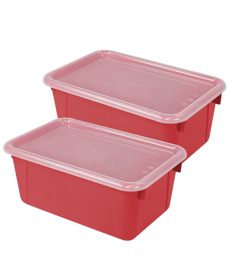 Storex Small Cubby Bin, with Cover, Classroom Red, Pack of 2