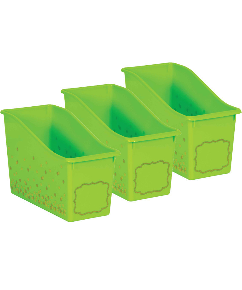Add a little style to your organization with these plastic book bins. Store books, folders, binders, magazines, notebooks, and much more! Each book bin measures 5-1/2" L x 11-3/8" W x 7-1/2" H. Sold as a pack of 3 bins.