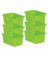 Keep small items neatly organized with these stylish storage bins. Small books, notepads, toys, games, and supplies can be stored away to help your room stay clutter free. Multiple bins can be stacked for easy storage. Each bin measures 7 3/4" L x 11 3/8" W x 5" H. Standard size storage bin. Sold as a pack of 6 bins.