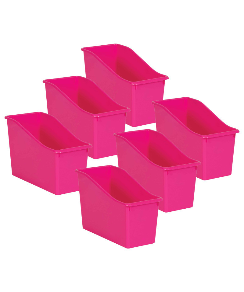 Add a little style to your organization with these plastic book bins. Store books, folders, binders, magazines, notebooks, and much more! Each book bin measures 5 1/2" L x 11 3/8" W x 7 1/2" H. Sold as a pack of 6 bins.
