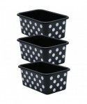 Teacher Created Resources® White Polka Dots on Black Small Plastic Storage Bin, Pack of 3