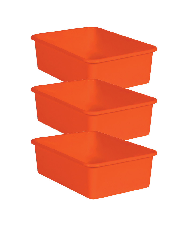 Create a beautifully organized classroom with these large storage bins. Keep books, notepads, toys, games, and supplies in these decorative organizers that feature a sturdy plastic design. Multiple bins can be stacked for easy storage. Each bin measures 16-1/4 "L x 11-1/2"W x 5"H. Sold as a pack of 3 bins.