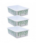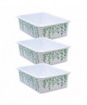 Create a beautifully organized classroom with these large storage bins. Keep books, notepads, toys, games, and supplies in these decorative organizers that feature a sturdy plastic design. Multiple bins can be stacked for easy storage. Each bin measures 16-1/4 "L x 11-1/2"W x 5"H. Sold as a pack of 3 bins.