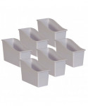 Add a little style to your organization with these plastic book bins. Store books, folders, binders, magazines, notebooks, and much more! Each book bin measures 5 1/2" L x 11 3/8" W x 7 1/2" H. Great plastic organizer! Sold as a pack of 6 bins.