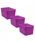 Keep items organized and close at hand and the rest of your space clutter free with these multi-purpose bins. Large enough for papers, books, notebooks, and other materials, these sturdy bins corral supplies and can be stacked for easy storage. Wide storage book bin. Measures 14" x 9 1/4" x 7 1/2". Sold as a pack of 3 bins.
