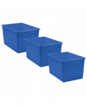 Keep items organized and close at hand and the rest of your space clutter free with these multi-purpose bins. Large enough for papers, books, notebooks, and other materials, these sturdy bins corral supplies and can be stacked for easy storage. Wide storage book bin. Measures 14" x 9 1/4" x 7 1/2". Sold as a pack of 3 bins.