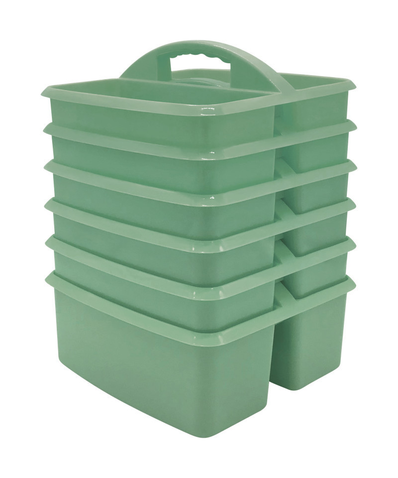 These storage caddies are a handy tote for your markers, calculators, timers, manipulatives, and many more small items that you want to keep within reach. These caddies are made from durable plastic and includes divided compartments for easy organizing. Each caddy measures 9" L x 9 1/4" W x 5 1/4" H. Sold as a pack of 6 caddies.
