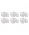 These storage caddies are a handy tote for your markers, calculators, timers, manipulatives, and many more small items that you want to keep within reach. These caddies are made from durable plastic and includes divided compartments for easy organizing. Each caddy measures 9" L x 9-1/4" W x 5-1/4" H. Sold as a pack of 6 caddies.