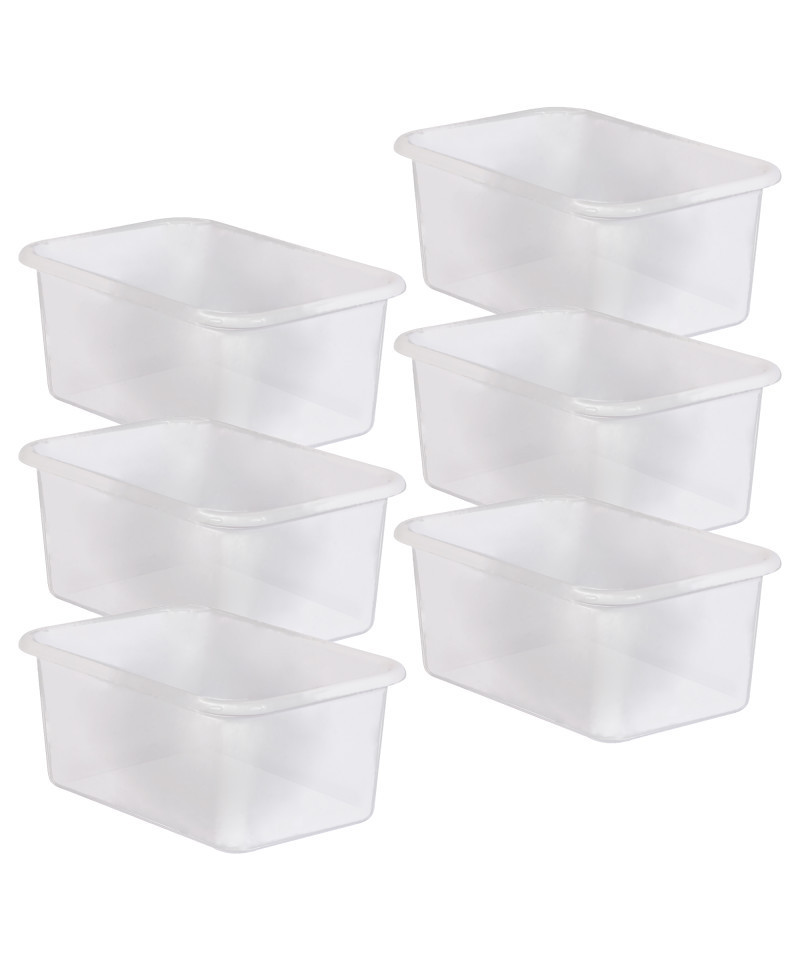 - Clear plastic storage offers the style and functionality to create an organized classroom that is clutter free, with the added bonus of displaying the contents so you can see everything you need.