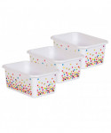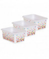 Keep small items neatly organized with these stylish storage bins. Small books, notepads, toys, games, and supplies can be stored away to help your room stay clutter free. Multiple bins can be stacked for easy storage. Each bin measures 7-3/4" L x 11-3/8" W x 5" H. Sold as a pack of 3 storage bins.