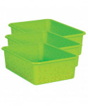Create a beautifully organized classroom with these large storage bins. Keep books, notepads, toys, games, and supplies in these decorative organizers that feature a sturdy plastic design. Multiple bins can be stacked for easy storage. Each bin measures 16-1/4 "L x 11-1/2"W x 5"H. Sold as a pack of 3 bins.