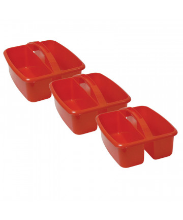 These storage caddies are a handy tote for your markers, calculators, timers, manipulatives, and many more small items that you want to keep within reach. These caddies are made from durable plastic and includes divided compartments for easy organizing. Each caddy measures 9" L x 9-1/4" W x 5-1/4" H.