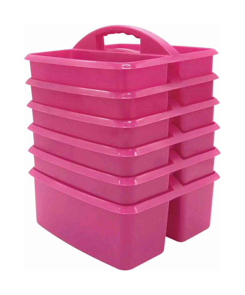 These storage caddies are a handy tote for your markers, calculators, timers, manipulatives, and many more small items that you want to keep within reach. These caddies are made from durable plastic and includes divided compartments for easy organizing. Each caddy measures 9" L x 9-1/4" W x 5-1/4" H. Sold as a pack of 6 caddies.