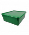 Stow things away with set on lids and stack them high. This tub holds plenty of what you need to store. Great for school or home organization. Made of non-toxic sturdy plastic. Includes lid. Measures 16" x 13-1/2" x 5-1/2".