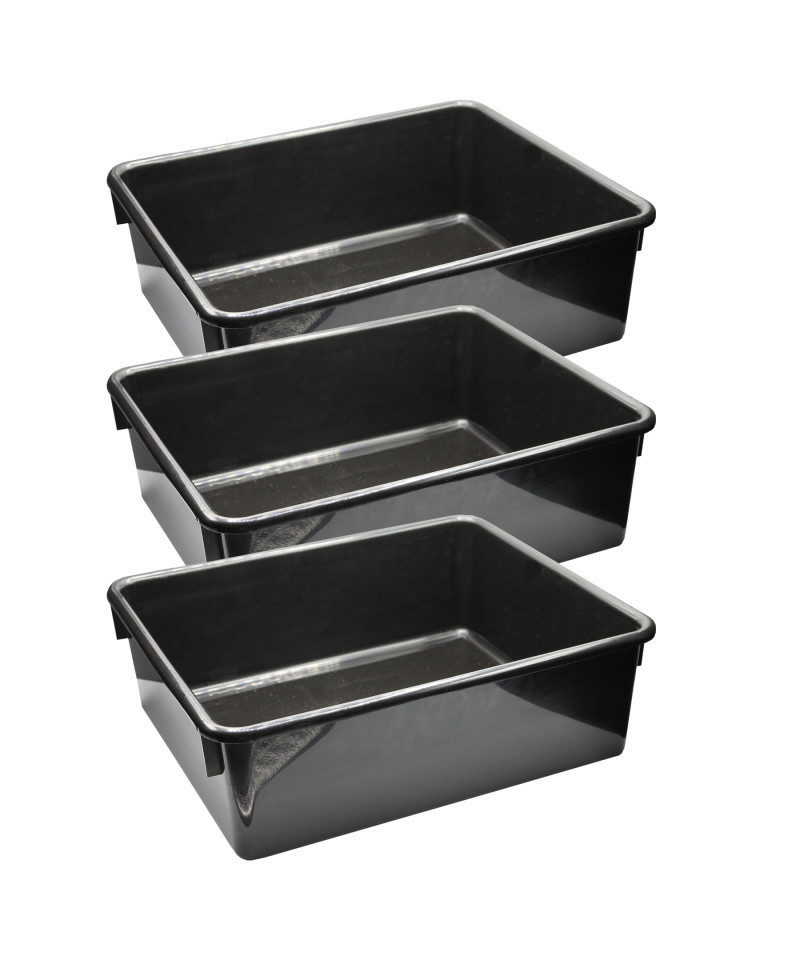 This tray holds plenty of what you need to store. Great for school or home organization. Made of non-toxic sturdy plastic. Lid not included. Measures 16" x 13-1/2" x 5-1/2". Sold as a pack of 3 trays.
