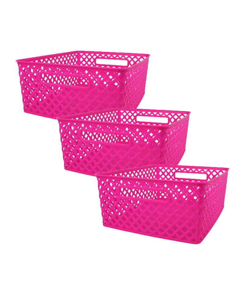 Romanoff Woven Basket, Medium, Hot Pink, Pack of 3
