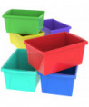 These storage bins are the ultimate companion for your bookshelf or cubby. The easy to grip handles are perfectly sized for big and small hands. They are made of impact resistant plastic and come in wonderfully bright colors. Use them to organize your room and store all your supplies. Measures 16.75"L x 11.87"W x 8.26"T. Sold as a set of 5 in assorted colors.