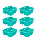 Sort your supplies for easy use and storage. The Caddy has 3 compartments (1 large and 2 small). The rounded handle has no sharp edges. Completely washable and dishwasher safe. Take your supplies from the closet to the work table quickly and simply. Small compartment interior dimensions are 3.5" long x 3.5" wide x 3.75". Large compartment interior dimensions are 8" long x 3.5" wide x 3.75" deep. Overall dimensions: 9.25"L x 9.25"W x 5.25"H. Sold as a pack of 6 caddies.