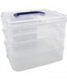 These clear storage containers are the perfect organizational tool for the home or classroom. Use them for storing and organizing manipulatives, crafts, classroom supplies, and more! Lid has a built-in handle. Containers snap-lock together for easy transportation and storage.