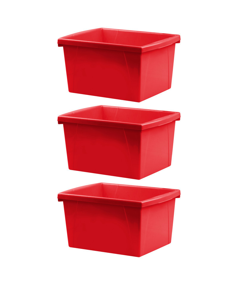 Storex 4 Gallon Classroom Storage Bin, Red, Pack of 3