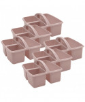 These plastic storage caddies are handy totes for your markers, calculators, timers, manipulatives, and many more small items that you want to keep within reach. Made from durable plastic and include divided compartments for easy organizing. Each caddy is BPA free and measures 9"L x 9-1/4"W x 5-1/4"H with 3 compartments. Sold as a pack of 6 caddies.