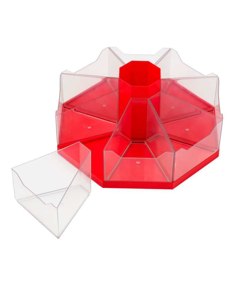 The Classroom Caddie is an octagonal storage system from Junior Learning. There are 8 easy-to-lock in place storage trays. Each is in clear plastic so you can see what is inside. The Caddie allows for the easy rotation of trays. The central holder can be used to storing pencils, pens or long items. Alternatively, it can be used as a base for stacking another Classroom Caddie to double the storage. The smart and easy way to organize your things with the Classroom Caddie. Measures 11.8" Diameter x 5.2" Tall.