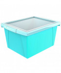 These storage bins are the ultimate companion for your bookshelf or cubby. The easy to grip handles are perfectly sized for big and small hands. They are made of impact resistant plastic and come in wonderfully bright colors. Use them to organize your room and store all your supplies. Clear snap on lid is included.