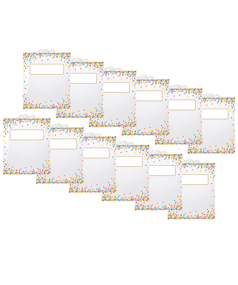 Store, organize and safeguard documents, pictures, projects, homework and more. Use to carry around books. Clear plastic poly bag comes with a strong snap-shut handle that makes it easy for students to take home. Blank space on the front allows for writing names, assignments or any type of label. Extra strong and durable material. Measures 11" x 16". Sold as a pack of 12.