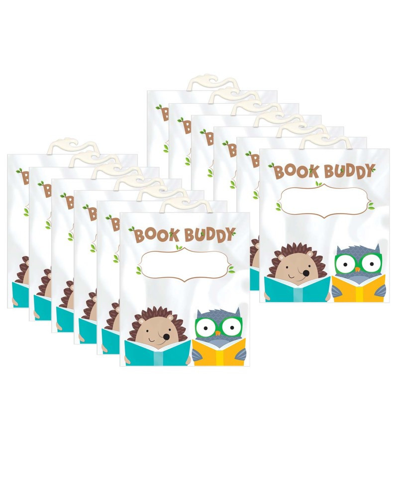 Protect and organize your classroom books and supplies with this versatile clear storage bag! These durable Woodland Friends Book Buddy Bags are a must-have for any classroom! They can be used to store, protect, and organize classroom readers, students' homework or projects, and other materials in the classroom or when students take them home. Each clear plastic bag comes with a sturdy, snap-shut handle for hanging on a classroom storage rack.