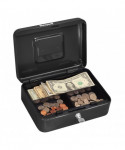 The Honeywell model 6202 small steel cash box features a removable tray with 2 coin and one bill slot, under the tray is an additional compartment for extra storage. The 6202 includes a key Lock with 2 entry keys, a scratch-resistant powder coat finish, pre-drilled mounting holes and hardware, and a convenient carry handle. This steel cash box is ideal for locking up cash and other small valuables. This Honeywell security box is backed by a 1 year limited warranty.