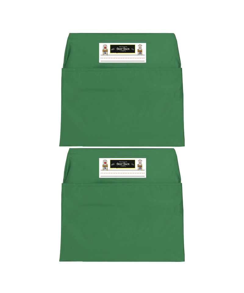 Seat Sack offers a Standard 14 Inch storage chair pocket for classroom organization that features a durable cotton/poly laminated fabric that is certified flame-resistant and machine washable. The Green Seat Sack has a 10 inch deep pocket and a 2 inch gusset that offers ample storage space to accommodate books, papers, school supplies and more. Fits chairs that measure 11" or less along the very top and widens to 14"at the pocket. Perfect for classroom storage, teaching organization and behavior management. Sold as a pack of 2 Seat Sacks.