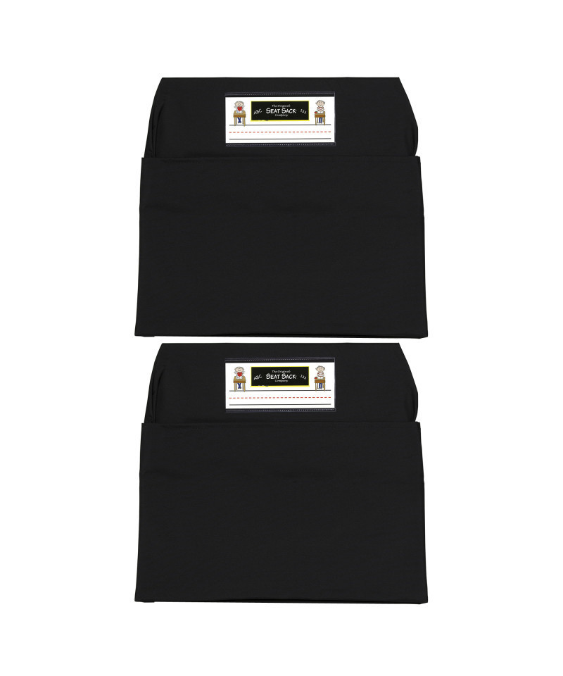 Seat Sack offers a Medium 15 Inch storage chair pocket for classroom organization that features a durable cotton/poly laminated fabric that is certified flame-resistant and machine washable. The Black Seat Sack has a 10 inch deep pocket and a 2 inch gusset that offers ample storage space to accommodate books, papers, school supplies and more. Fits chairs that measure 12.5" or less along the very top and widens to 15" at the pocket. Perfect for classroom storage, teaching organization and behavior management. Sold as a pack of 2 Seat Sacks.
