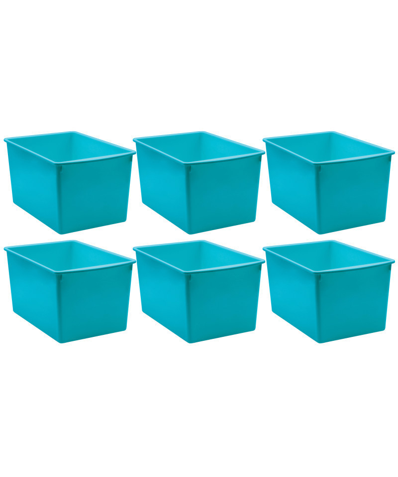 Keep items organized and close at hand and the rest of your space clutter free with these multi-purpose bins. Large enough for papers, books, notebooks, and other materials, these sturdy bins corral supplies and can be stacked for easy storage. The bins measure 14" x 9 1/4" x 7 1/2". Sold as a pack of 6 bins.