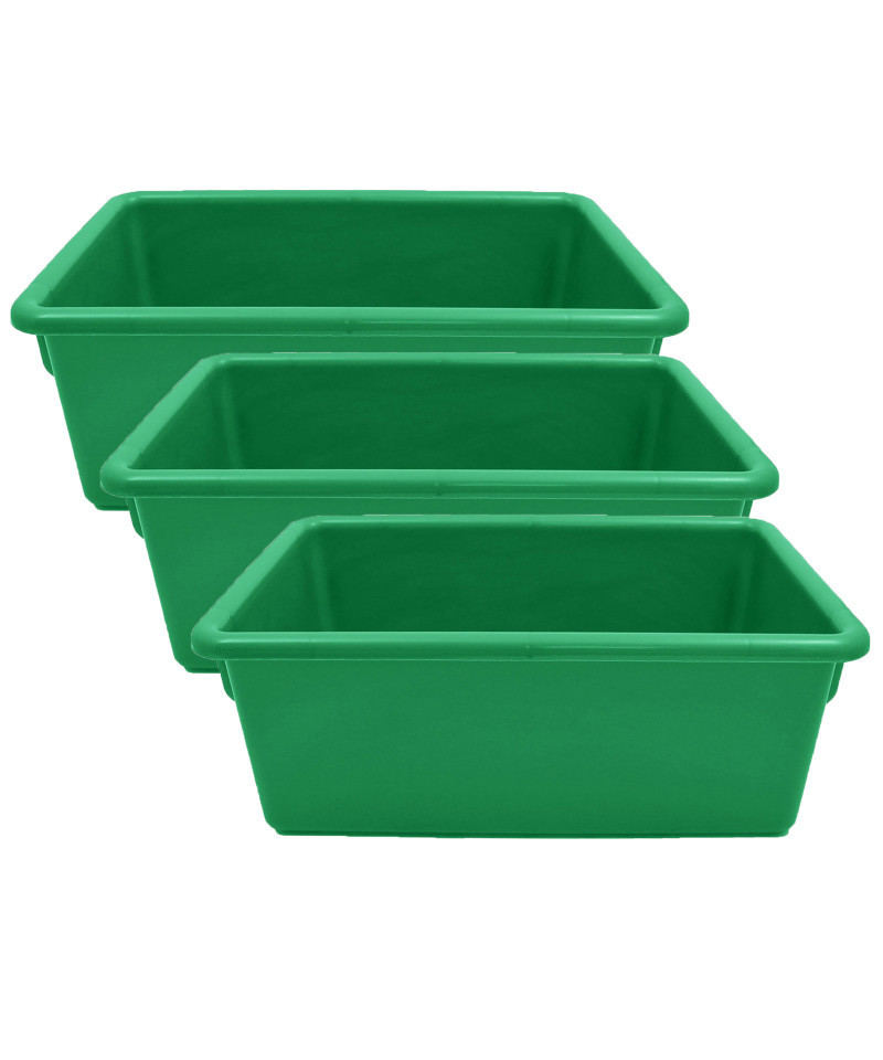 Super strong bins are ideal for storage in the classroom. Indoor use only. Non-toxic and impact resistant. Matching lids available. Cubbie-Trays measure 8.6"W x 13.5"D x 5.3"H. Sold as a pack of 3 trays.